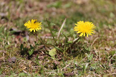 また、草地にはかわいいタンポポが、プランターには色とりどりのパンジーが咲いています。