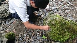 3年生の選択授業「森を活かす」でコケの調査を行いました。学校周辺の調査だけで10種類のコケがありました。