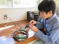 つる植物、樹木の葉や実を使い、クリスマスリースを作りました。また各自が考えた装飾品を付けました。