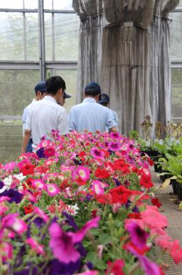 担当の教員が実習のポイントや目的を示した後、観察するヤツシロソウを選ぶために温室に向かいました