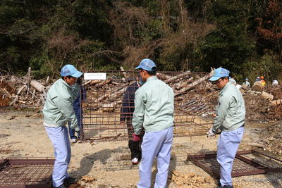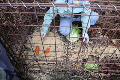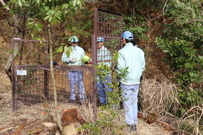 2月25日(火)、八代市役所水産部林務課、熊本県南広域本部林務課の方々の協力を頂き、講師にくまもと☆農家ハンターの稲葉様招き罠設置に関する実地研修を行いました。