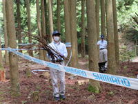 を行いました。スギの枝がたくさんあり、マウンテンバイク走行の支障になります。コケの路面でも滑ったり