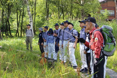 台風の影響も心配されましたが、晴天に恵まれ、心地よい風が吹き、最高のトレッキングをすることができました。尾瀬自然解説ガイドの栗原様の御指導のもとで、尾瀬ヶ原の環境で育った貴重な植物を間近で見たり、匂いを嗅いだり、雄大な景色を楽しんだり、生態系や環境保全のことを考えたりすることができ、大変勉強になりました。また、大自然の中で食べたお弁当は格別でした。自然を体いっぱいで感じた、まさに「グリーンライフ科」らしい1日でした。