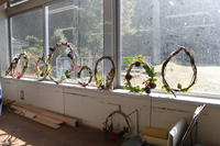 さすが!3年生なだけあり、カズラを手早く編み込んでいき「リボン以外は、自然のもので飾り付けする!」という条件の中、学校周辺から木の実や葉を拾い集めて、上手く飾り付けしていました。