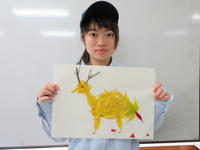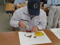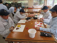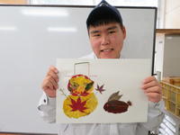1年生がイロハモミジやイチョウなどの落ち葉を使い、落ち葉アートに取り組みました。集めた落ち葉で葉の色ごとに配置を気にしながら、約1時間程度で完成しました。落ち葉の色をいかした、良い作品ができましたね!