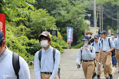 神社に到着すると、ひと休みして、みんなで記念撮影をしました