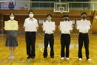 終業式の前に表彰式が行われ、学校農業クラブ連盟年次大会プロジェクト発表Ⅲ類で優秀賞を獲得したメンバーと、前日のクラスマッチの代表者へ表彰をしました