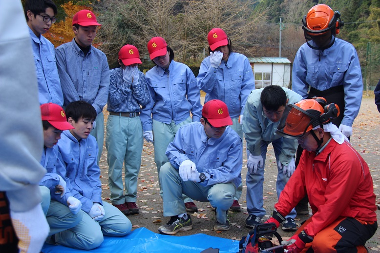 八代地域林業研究・普及連絡協議会主催の平成29年度高校生に対する林業経営・就業体験学習会が、12月9日(土)泉コミュニティセンターで行なわれグリーンコースの2年生と3年生がチェーンソー整備とジビエ料理にそれぞれ分かれて挑戦しました。当日は講師として第一索道商事社長の平野隆三氏と八代林業研究グループの方々が、チェーンソー目立てなどを指導していただきました。また同じ時間帯に、地元のしゃくなげ会の方々のご指導により、シカ肉と猪肉を使ったジビエ料理に挑戦し、皆で会食しました。