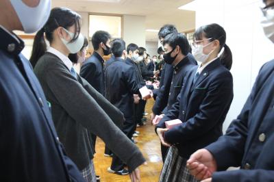 卒業式に1・2年生の出席はできませんが、卒業する3年生は、1・2年生の思いも一緒に式に臨んで欲しいと思います