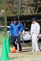 3時間目の1年生の体育は、グラウンドでサッカーをしました。