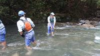 雨が続いた影響もあり、上流から色々な漂流物があったのでみんなで掃除をしました。その後、カヌーができる程度のスペースを確保するために堆積した泥や砂利をどかしました喜ぶ・デレ水の中での実習でしたので、普段使わない筋肉を使って筋肉痛になった人もいたようです汗・焦る