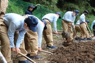それほど広い圃場ではないのですが、1人分でも見た目以上に大変で、汗だくになる生徒もいました