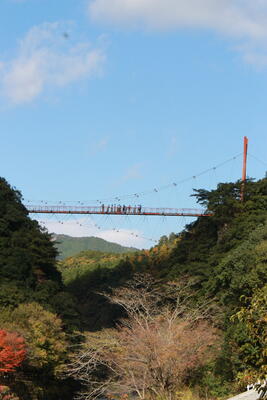 到着後、吊り橋で記念撮影し、防災飯をつくって食べました。食事後にゆっくり景色を堪能しました。