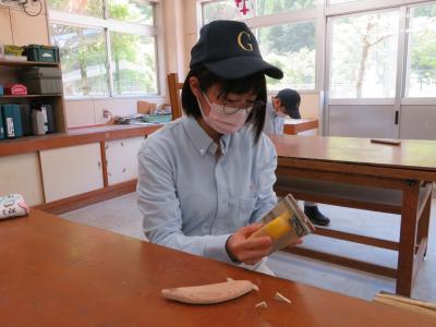 この日の3年生が作成しているのは、「川魚の飾り」です