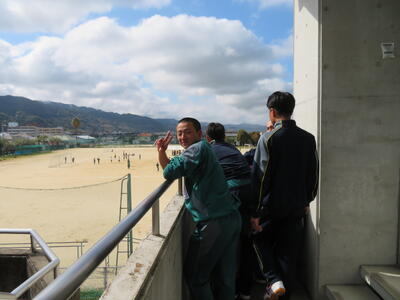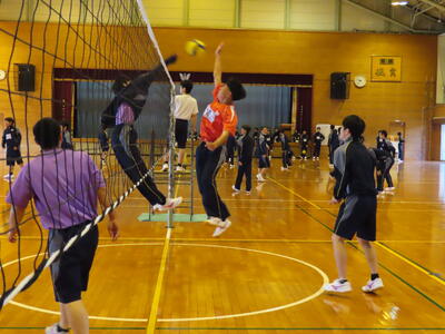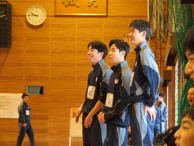 1年生男子はバドミントンで、体育の授業で練習していたので始めてバドミントンをした人も経験者の人もとても良いプレーができていました。観戦している人たちの応援の声や拍手もあってとてもにぎやかになっていて楽しかったです!1年生最後のいい思い出になりました。(1年広報委員)