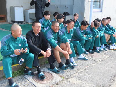 卒業式の最後ではでは逞しい姿で退場していました。後輩などから花束をもらっている人もいました。