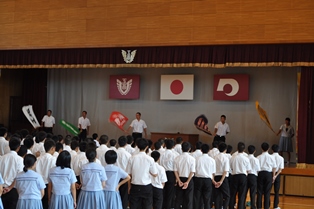 始業式後は教務部、進路指導部、生徒指導部から2学期に関してのお話。
