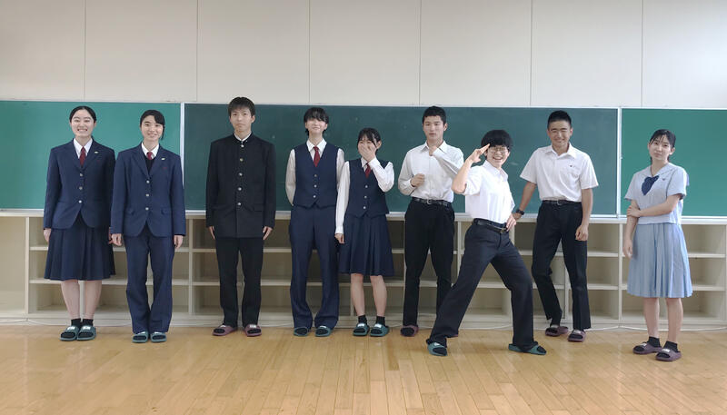 左から冬服、中間服、夏服です!女子にもスラックスがあります。