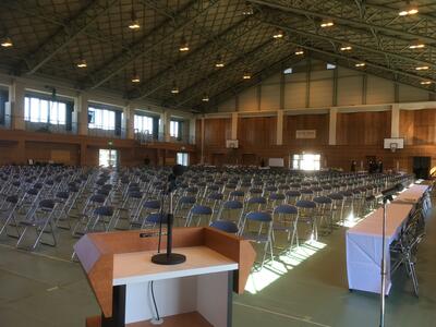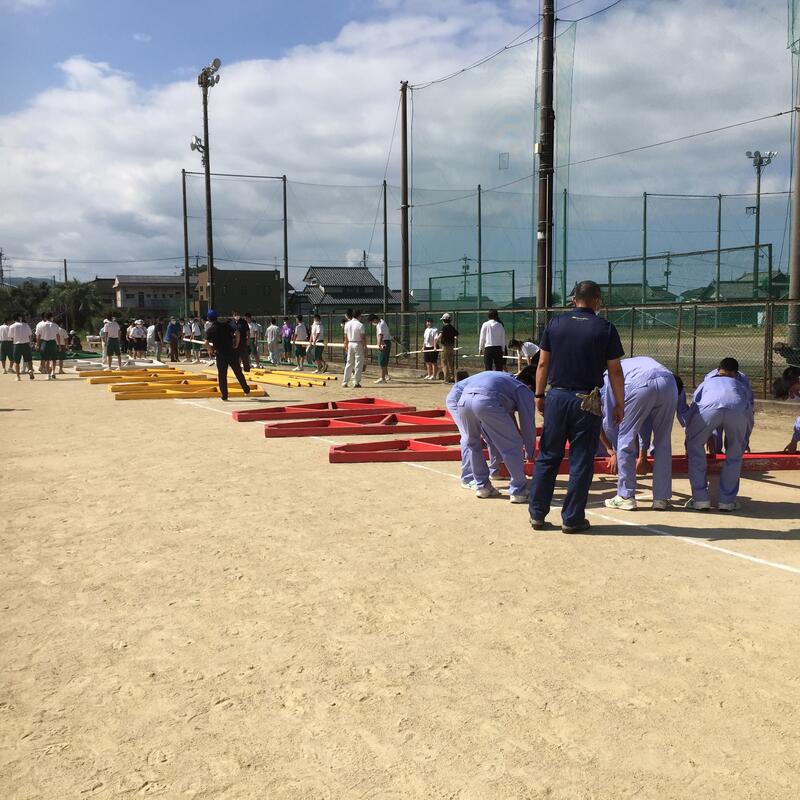 その後、業者による組立で立派なスタンドが建ち、体育祭に向けて準備が一つ整いました。