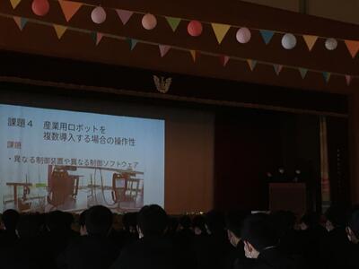 中間考査終了後、マイスター・ハイスクール事業第2回産業講話および熊本県域説明会が実施されました。