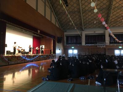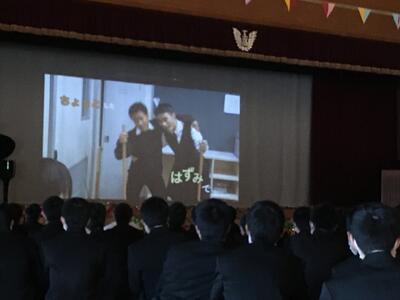 体育館に集まるのも3年生と1・2年生で分れ、オープニングや生徒研究発表も2回に分けて行われました。