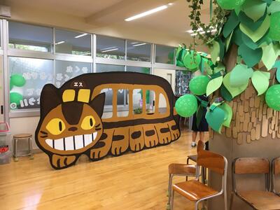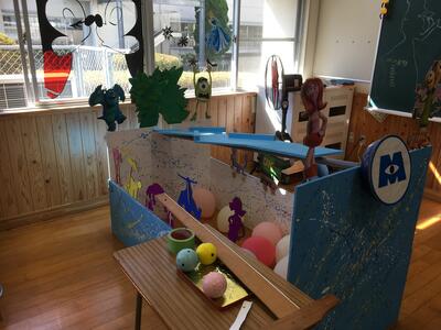 今年の僕達のクラスの出し物は縁日でした。最初は順調でしたが、教室の照明の色を変えるときにちょうどいいような色がなくとても苦労しました。しかし、最終的にちょうどいい色が見つかり、鳥居作りなども順調に行き、満足できる仕上がりになりました。とてもいい思い出になりました。