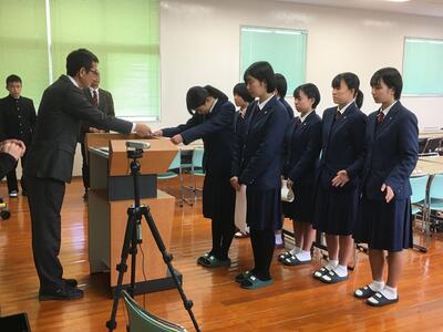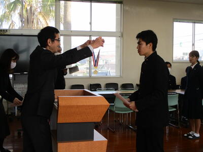体育祭練習前に表彰式と九州大会選手推戴式が行われました。