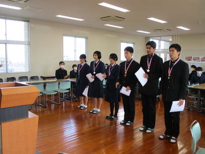 まずは第2学期表彰式。様々な分野でたくさんの工業生が活躍しました!