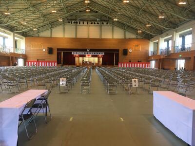 本日は前日準備で看板上げや団席装飾なども行われました。
