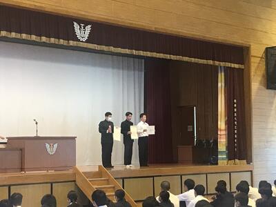 表彰式では、部活動や技能検定、クラスマッチで優秀な成績を収めた生徒たちが表彰されました