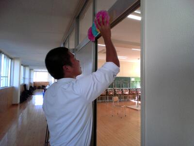 9月20日に体育祭で使用する団席の運び出しを行いました。とても重いのですが、3年生が何往復もしながら、声を掛け合って運びました。また、各団の団画も着々と進められています。
