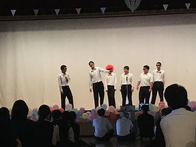 今年の僕達のクラスの出し物は縁日でした。最初は順調でしたが、教室の照明の色を変えるときにちょうどいいような色がなくとても苦労しました。しかし、最終的にちょうどいい色が見つかり、鳥居作りなども順調に行き、満足できる仕上がりになりました。とてもいい思い出になりました。