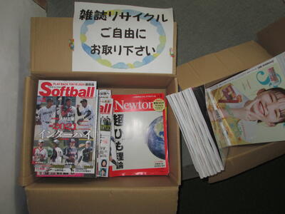 図書館入り口にで「雑誌リサイクル」を実施中です。