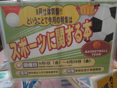 9月は、3年生の図書委員おすすめの本というテーマで7冊の本を展示しています。