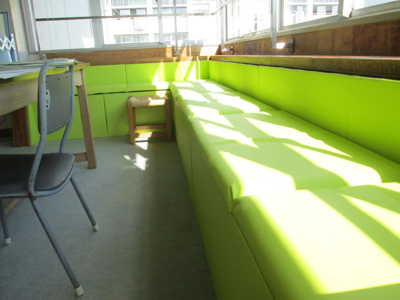 大きな机を3つはずし、スペースを設け、新しい書架を入れました。