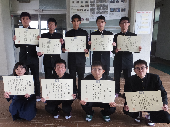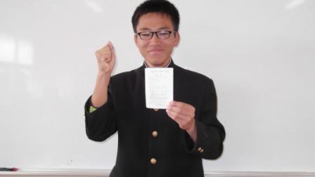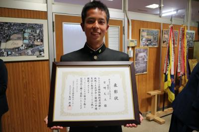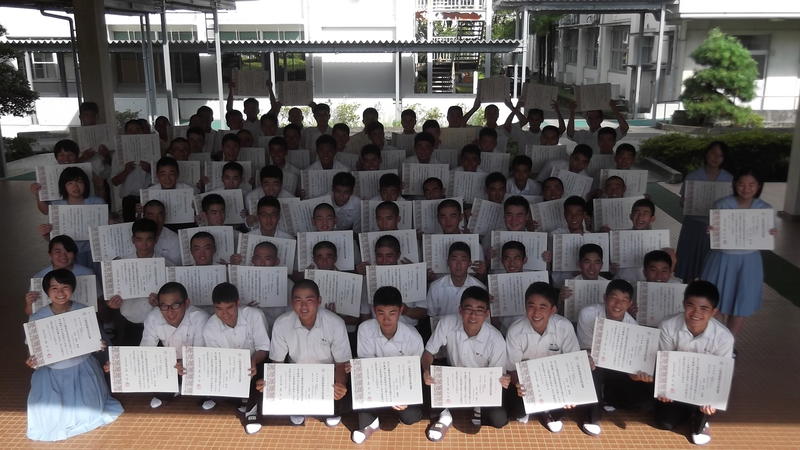 私は指導してくださった先生や講師の先生などいろいろな方々のおかげで、この賞状をいただくことができました。ありがとうございました。(村山くん 八代二中出身)