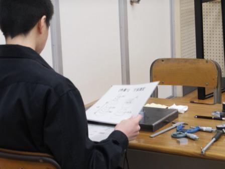 国家技能検定 3級 機械加工 マシニングセンタ作業 合格の機械科3年生芦田くん。