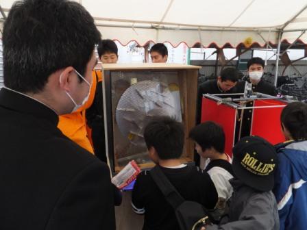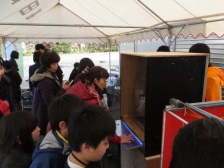 12月11日(土)、千丁コミュニティセンターで「まなびフェスタやつしろ」が開催されました・本校からは工業化学科と機械科を中心とした機械製作部が出展しましたが、会場には多くのお客様が参加され、機械製作部の「お菓子釣りロボット」は小さな子供連れのご家族に大好評でした。