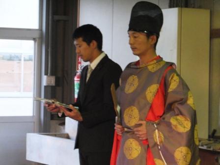 今回、神主を務めさせていただいた原賀です。今年1年も生徒・職員がケガをしないように、真剣に安全祈願させていただきました。