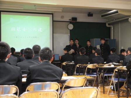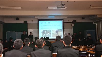 2年生は先輩たちの発表を聞いて、ものづくりの大変さを認識し、実習を受ける態度を改める良い機会になったようです。