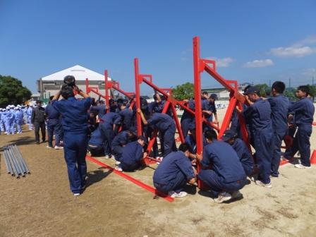 11月7日(日)、熊本工業高校で標記の大会が実施されました。競技内容は、埼玉県で開催される(ビデオ審査)全国大会に準じたもので、一台のロボットがエリア毎に、オペレータの操縦と自動運転で課題をクリアして得点を競うものです。本校では機械製作部と機械科3年生の課題研究で大会に向けてロボット製作に取り組んできました。