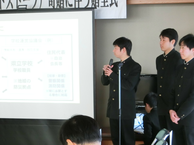 本校は平成29年度より「防災型コミュニティ・スクール」として指定され熊本地震の教訓のもと、行政をはじめ地域と連携した学校づくりを行っているところです。学校運営協議会を開催し、ロケットストーブを用いた防災食の試食や地域の方との避難訓練、制作した避難所運営マニュアルを地域の方々にも配布し情報の共有等を行っています。また、今後は「総合型コミュニティ・スクール」に向け、さらに地域の皆さんとの連携をすすめていきたいと考えております。
