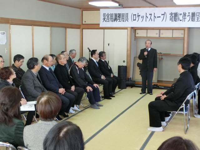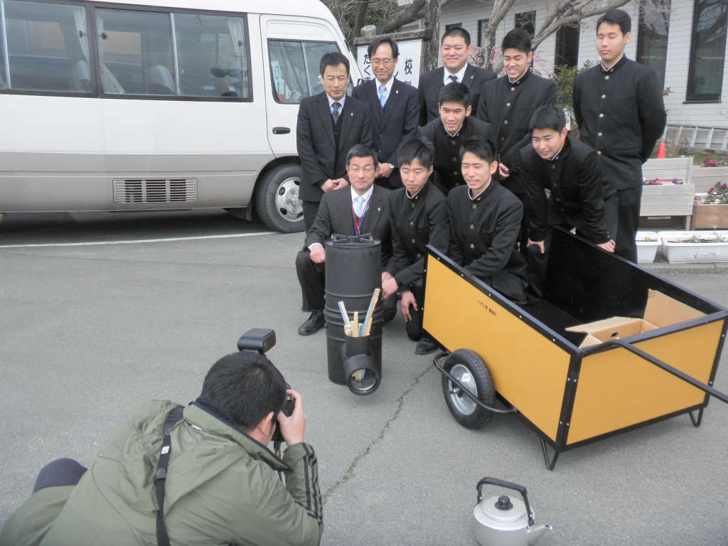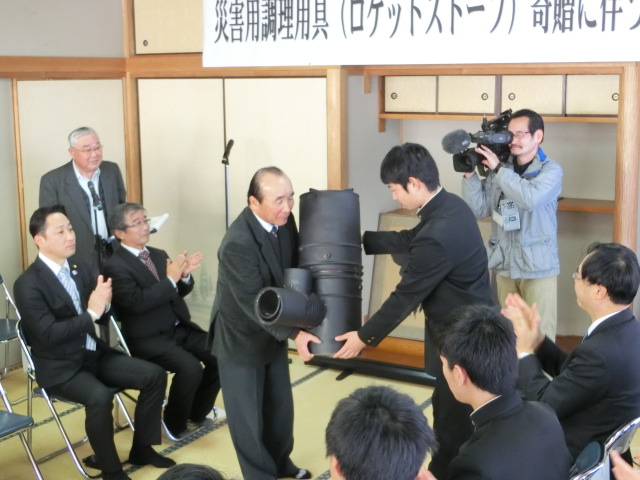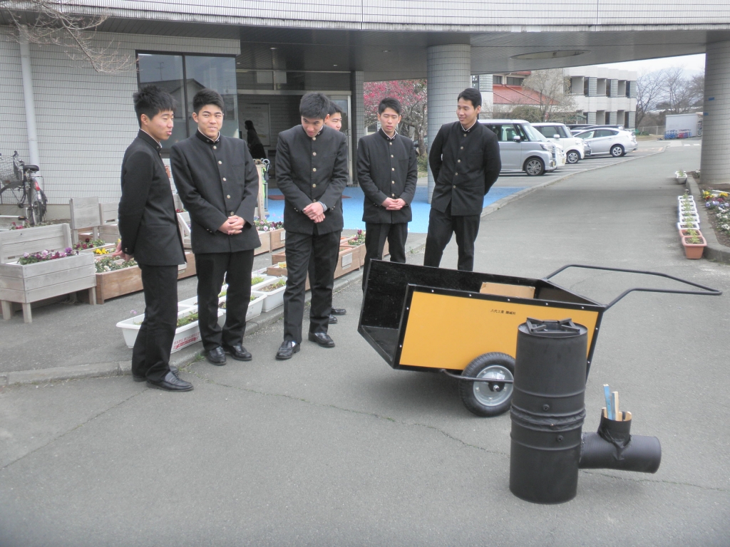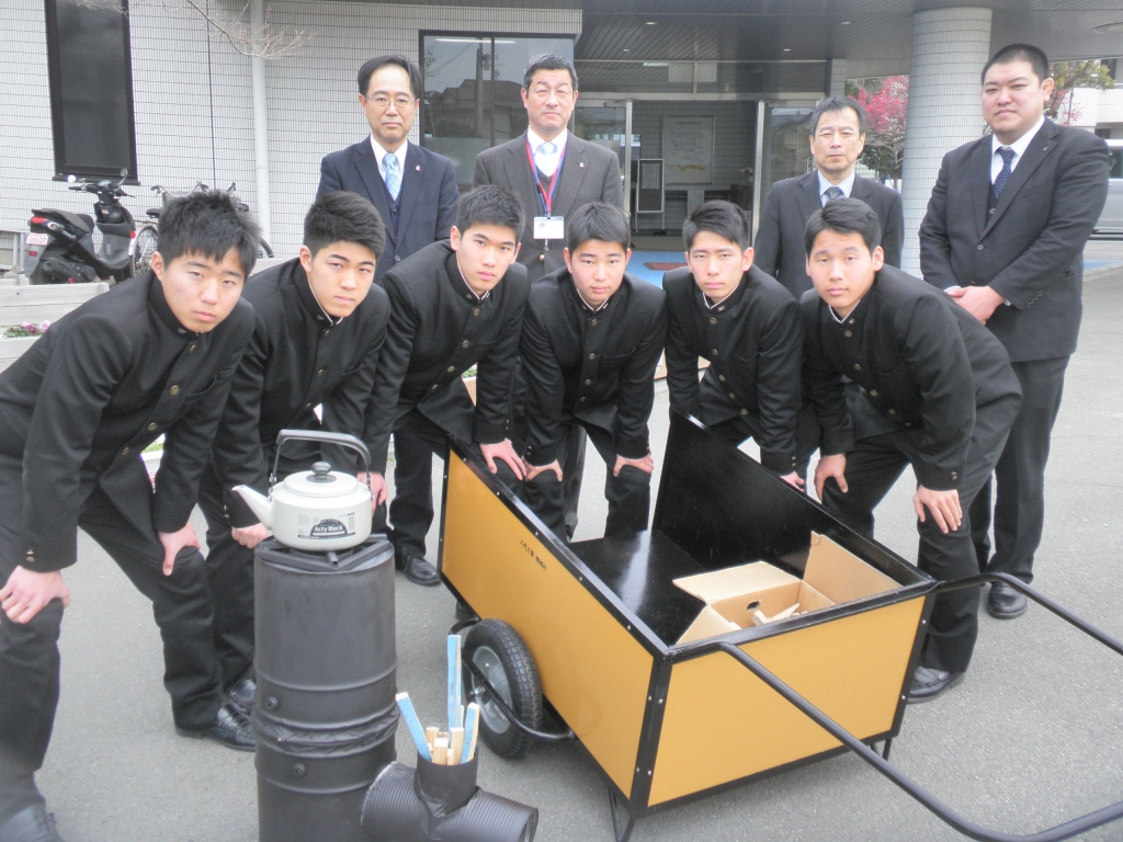 八代市社会福祉協議会様へのロケットストーブ贈呈式(機械科)