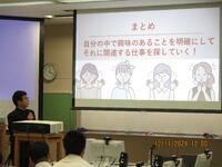 授業開始時は生成AIの使用や大学の先生の授業などに対して少し緊張気味の生徒たちでしたが、杉本先生の話術と、サポートしてくださった3人の大学生の皆さんのおかげで、徐々に和やかな雰囲気になりました。また、自分の『ワクワクする仕事』について生成AIを利用しながら自分の考えを深め、最後はスライドにまとめて発表まで行うことができました。3時間では足りないほどの充実した内容で、生徒たちも理解が深まったようです。