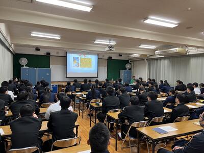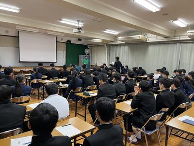 高校入学から現在までの5年間を振り返りながら、いま頑張っておいたほうが良いことや、企業で求められる人間性、進学・就職のメリット・デメリットなど分かりやすく話して頂きました。3名の皆さん、とても分かりやすく講話して頂き有難うございます。