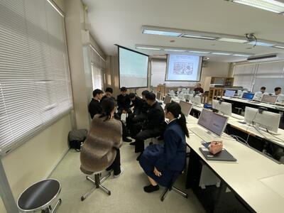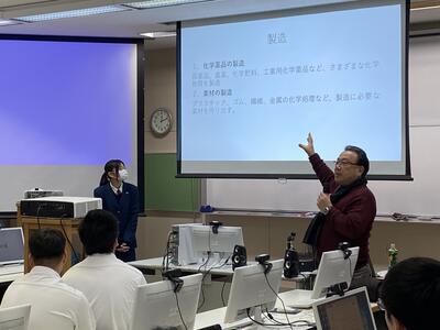 12月11日(水)に、熊本大学 大学院 先端科学研究部 准教授 杉本 学 先生にお越しいただき、工業化学科2年生の生徒20人に対して授業をしていただきました。