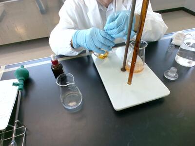 物理化学実習では、「吸着量の測定」をおこなっています。