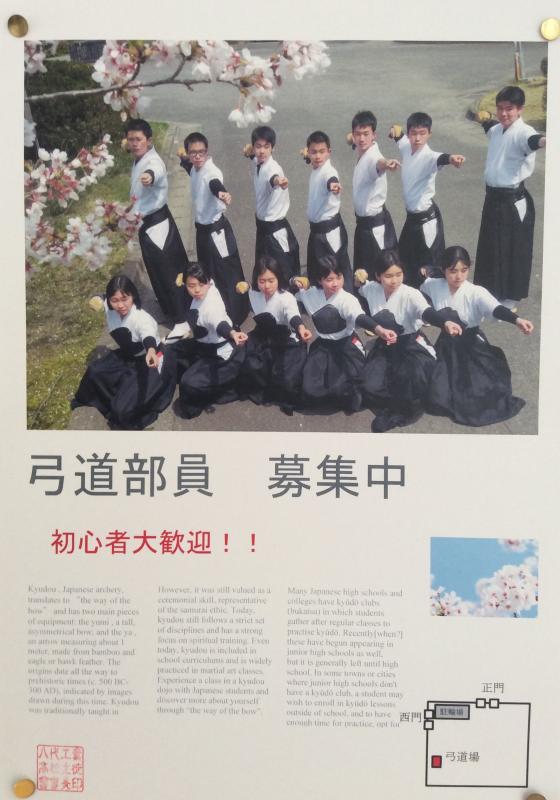 中学生の皆さん、高校で弓道を始めてみませんか?人数が少なくても、全員初心者でも、誰でも上位大会を狙える可能性がある、夢のある競技です。一度、大会や練習を見に来てください!