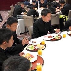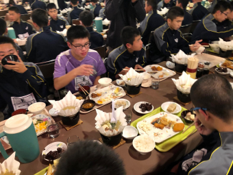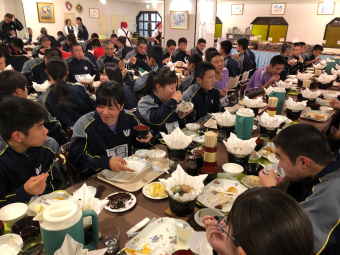 夕食後はスキー研修のウエアーチェックが行われたようです。