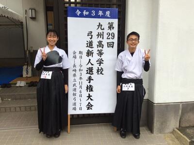 11月6日(土)に長崎県立武道館弓道場(佐世保市)で「第29回九州高等学校弓道新人選手権大会」が行われ、男子個人に新堀(E2A)が出場しました。
